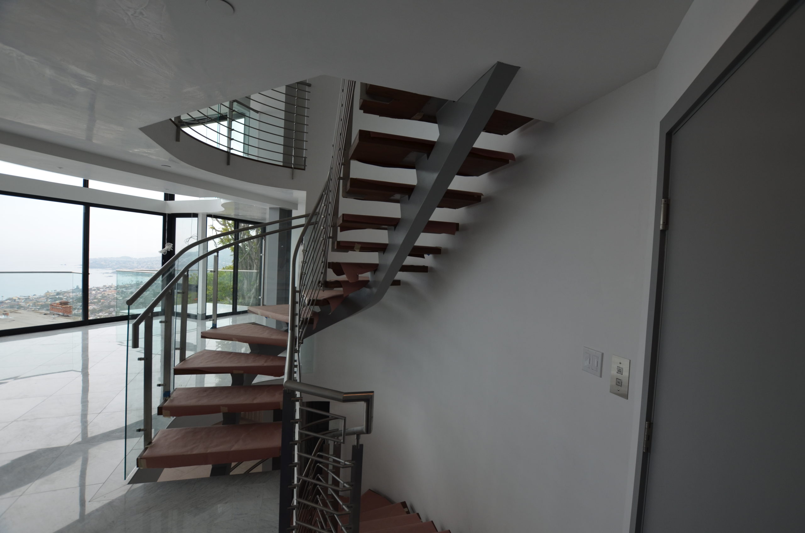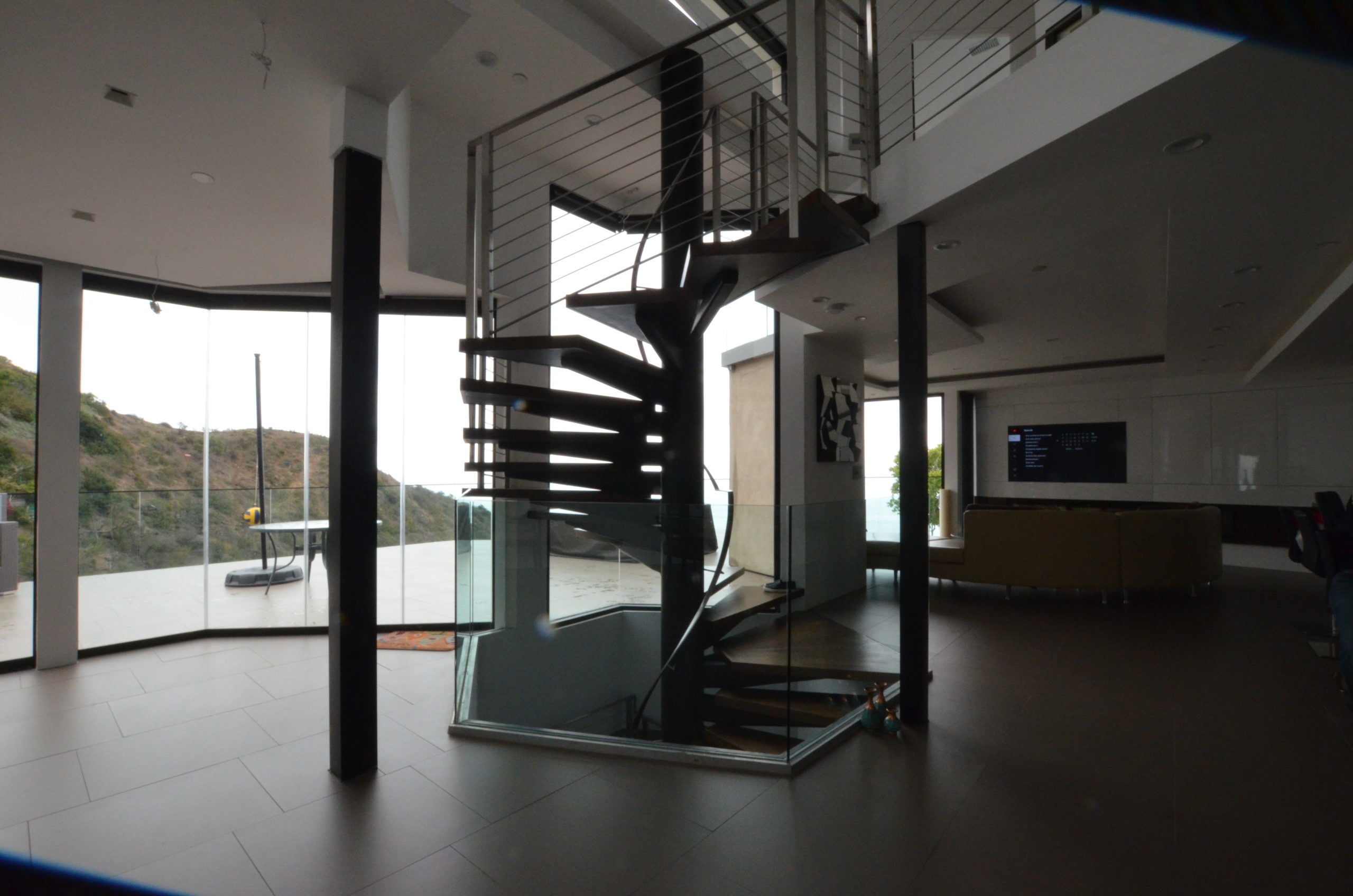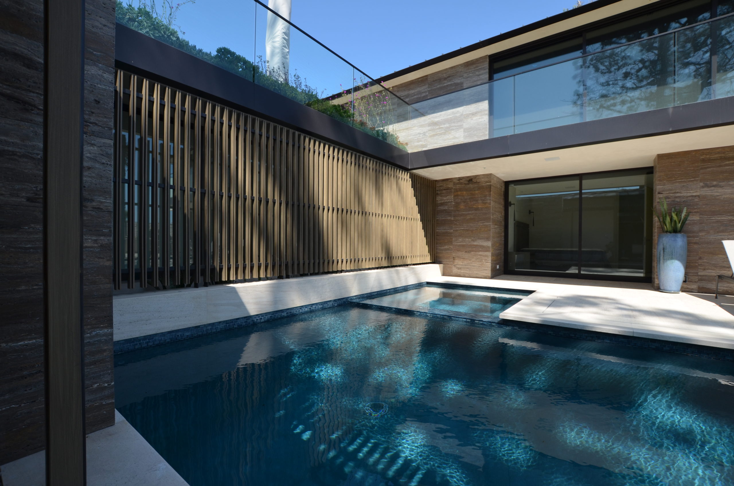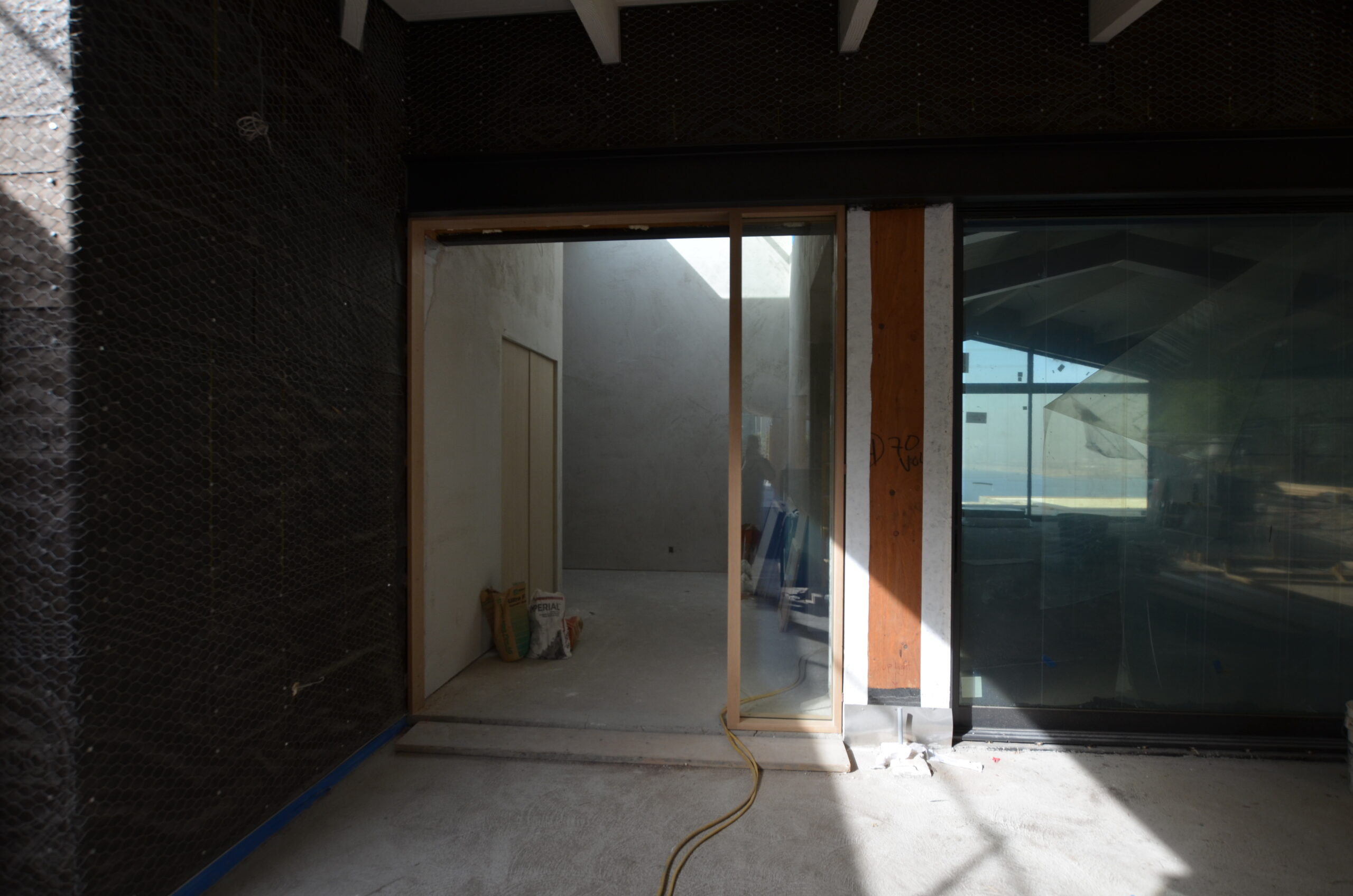 Flush Pivot Door with Integrated Steel Pull Handle and Sidelite.